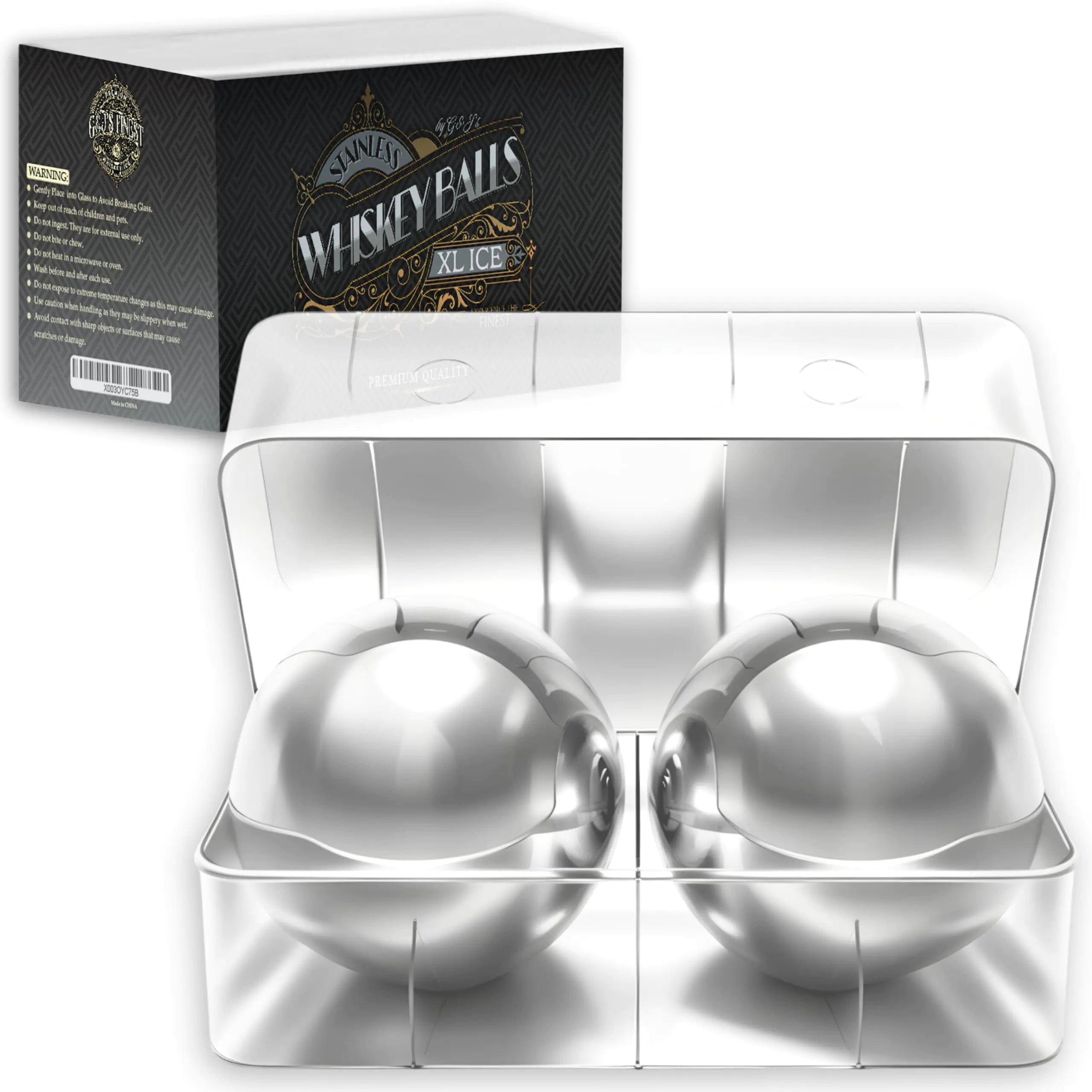 2 Premium XXL 55mm Stainless Steel Ice Whiskey Balls with Freezer Tray